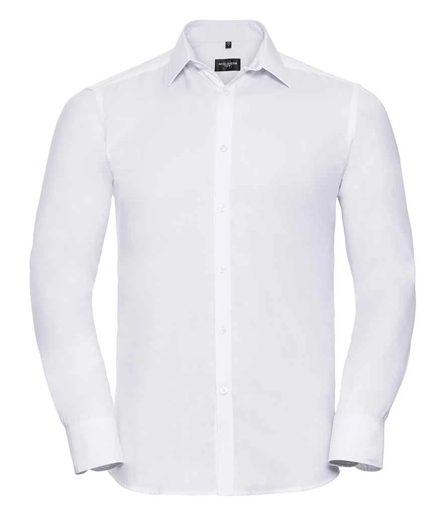Russell Collection Mens Long Sleeve Tailored Herringbone Shirt