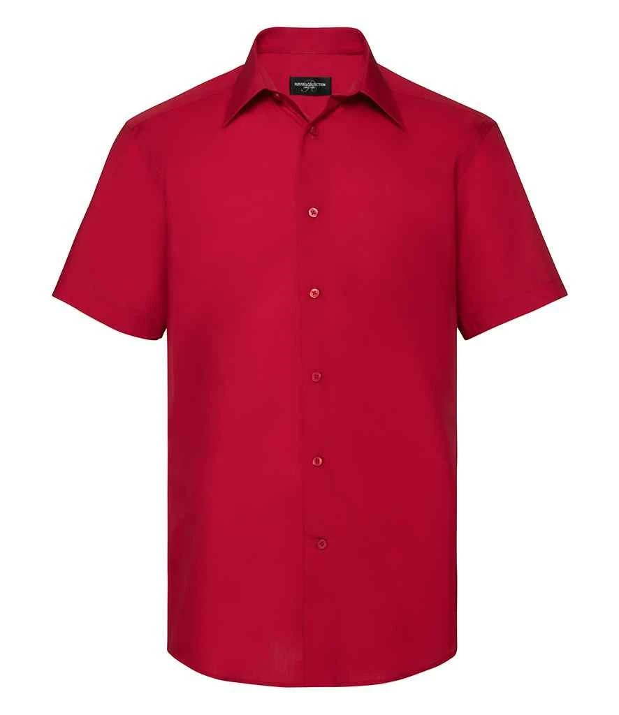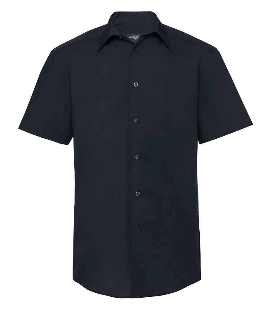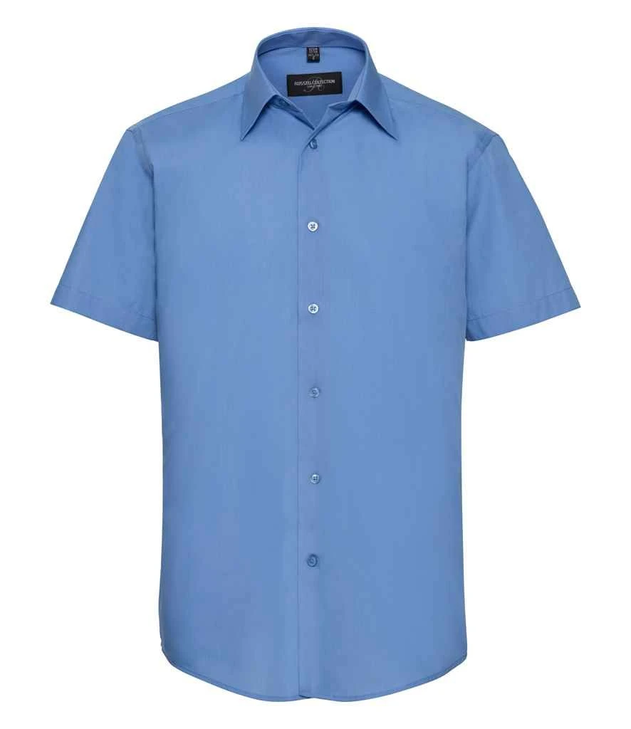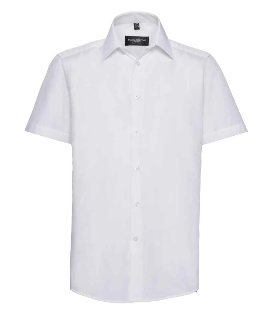Russell Collection Mens Short Sleeve Tailored Polycotton Poplin Shirt